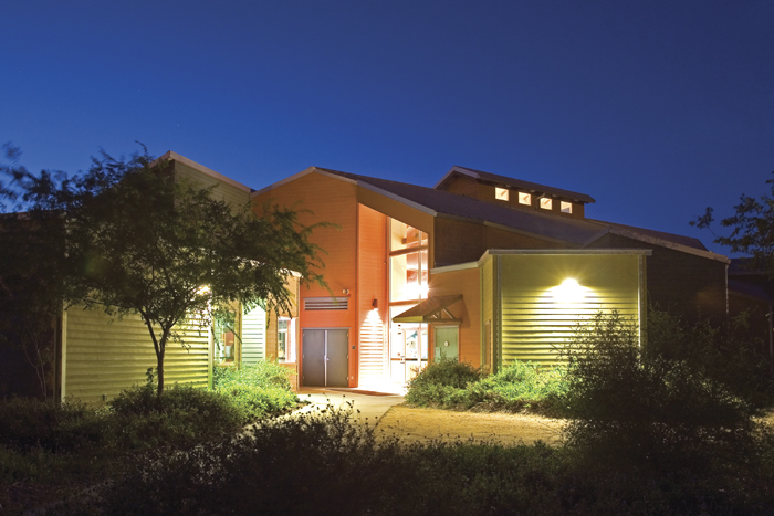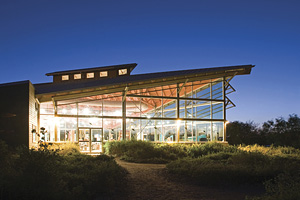 The World Birding Center in Edinburg is a 5,400 ft² building (interior area) situated within a network of exterior viewing and exhibit areas. The building holds integrated displays and services for the park, but it also establishes a pattern of movement into and through the birding areas. Site and facility access is required to be pedestrian for site preservation.