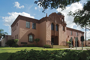 This project was an exterior restoration of an existing 4800 ft² historic city hall building. Work consisted of waterproofing existing windows, rebuilding deteriorating façade over front entrance, and completely removing and reinstalling historic barrel tile roof after waterproofing substrate. A local stucco artist was commissioned to restore ornate window frames and the building eave’s decorative frieze and stylized frontispiece.