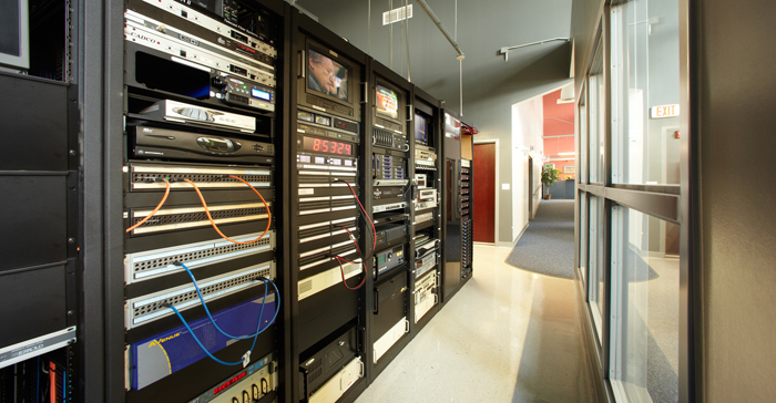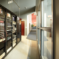 A new media center is designed and constructed within an old school gymnasium space. The center includes a full, double-height studio with all necessary supporting facilities for state-of-the-art video production. Supporting spaces include office space for six staff, an engineering staff, a control room and an editing room. Mezzanines provide storage space fort the district’s extensive video archive.