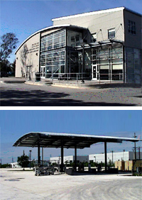 The Todd Lane Service Center is a 34,000 SF administration building containing facilities for vehicle maintenance, fueling and wash, covered work areas and parking for 200 vehicles. The second floor serves as 7,000 SF of administrative offices for the City of Austin Solid Waste Services Department. Of particular interest in this project’s design was the need for extensive sheltered outside working areas. A system of canopies, simple and elegant, was designed to serve this purpose. The circulation and work flow between exterior and enclosed working areas was designed to provide maximum efficiency.