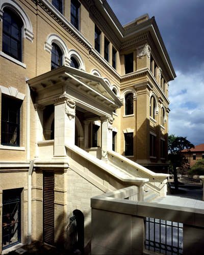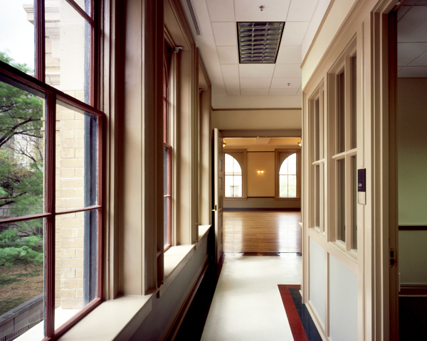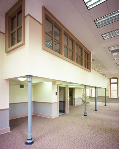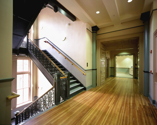 The facility required serious fire and life safety upgrades. One internal fire stair was added, and to conserve much-needed floor space for the administrators, a sensitively-designed second fire stair was designed to replace a not-to-code exterior fire escape.
