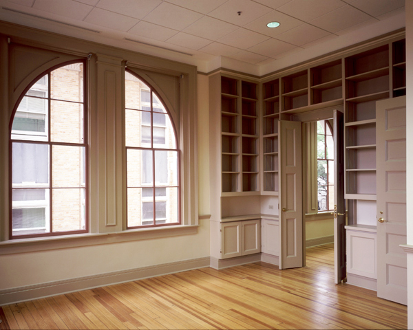 Inside, the original pine flooring was uncovered and restored, new mechanical and electrical systems were installed, a new elevator was installed, and the entire building was brought up to current code. New partitions were installed in the open studio wings to create offices. While partitioning and new mechanical systems changed the interior of the building, the feel of the original building remained.